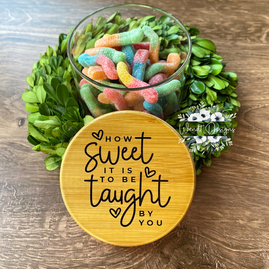 Engraved Candy and Desktop Jars - Glass Jar with Bamboo Lid