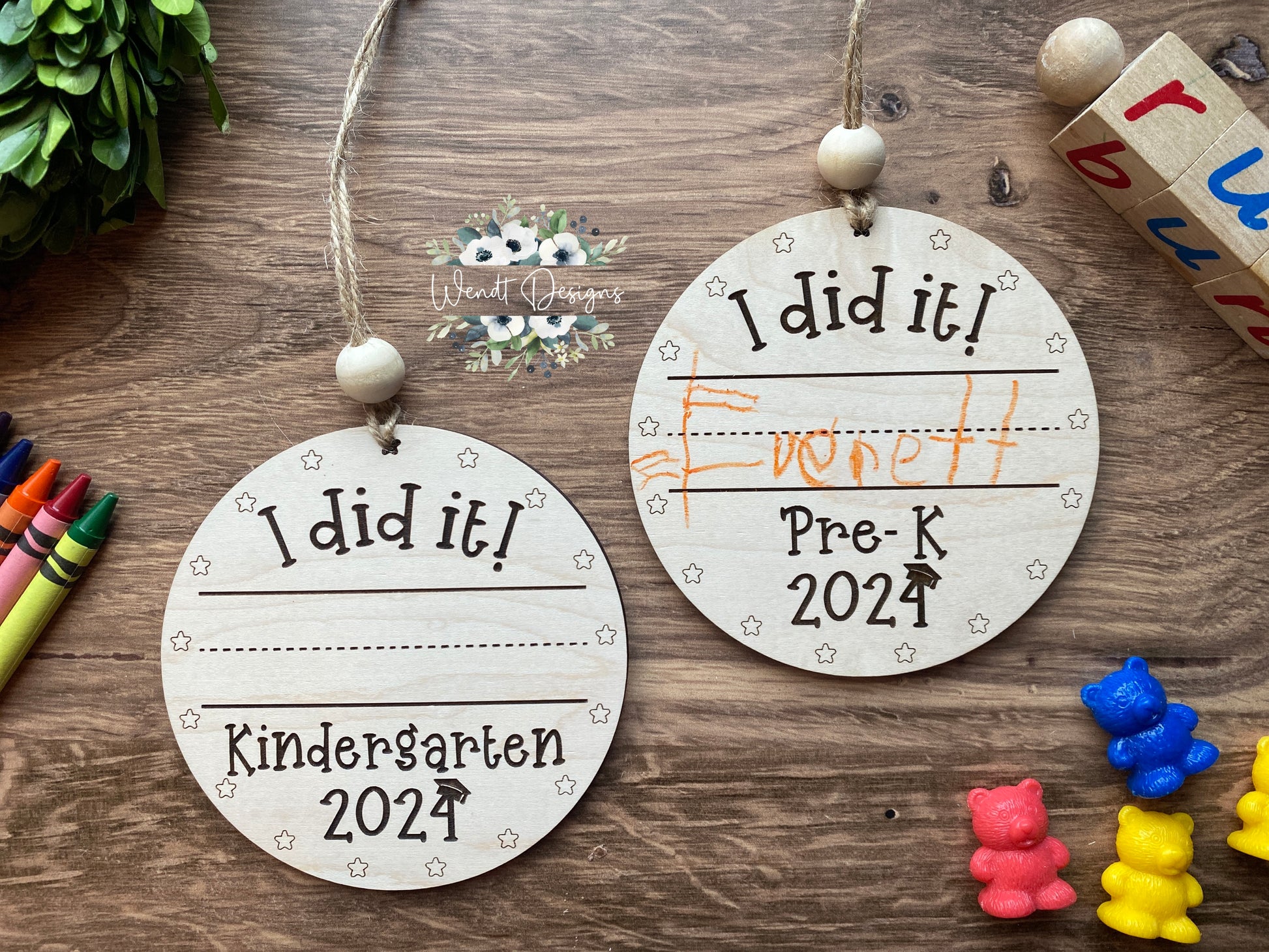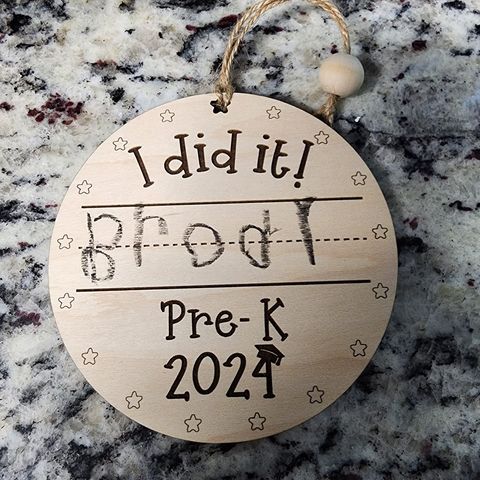 Each wooden charm is fully engraved and comes prepped for your little one to add their name on the provided line. I recommend using a fine tip permanent marker or crayon for the handwriting.