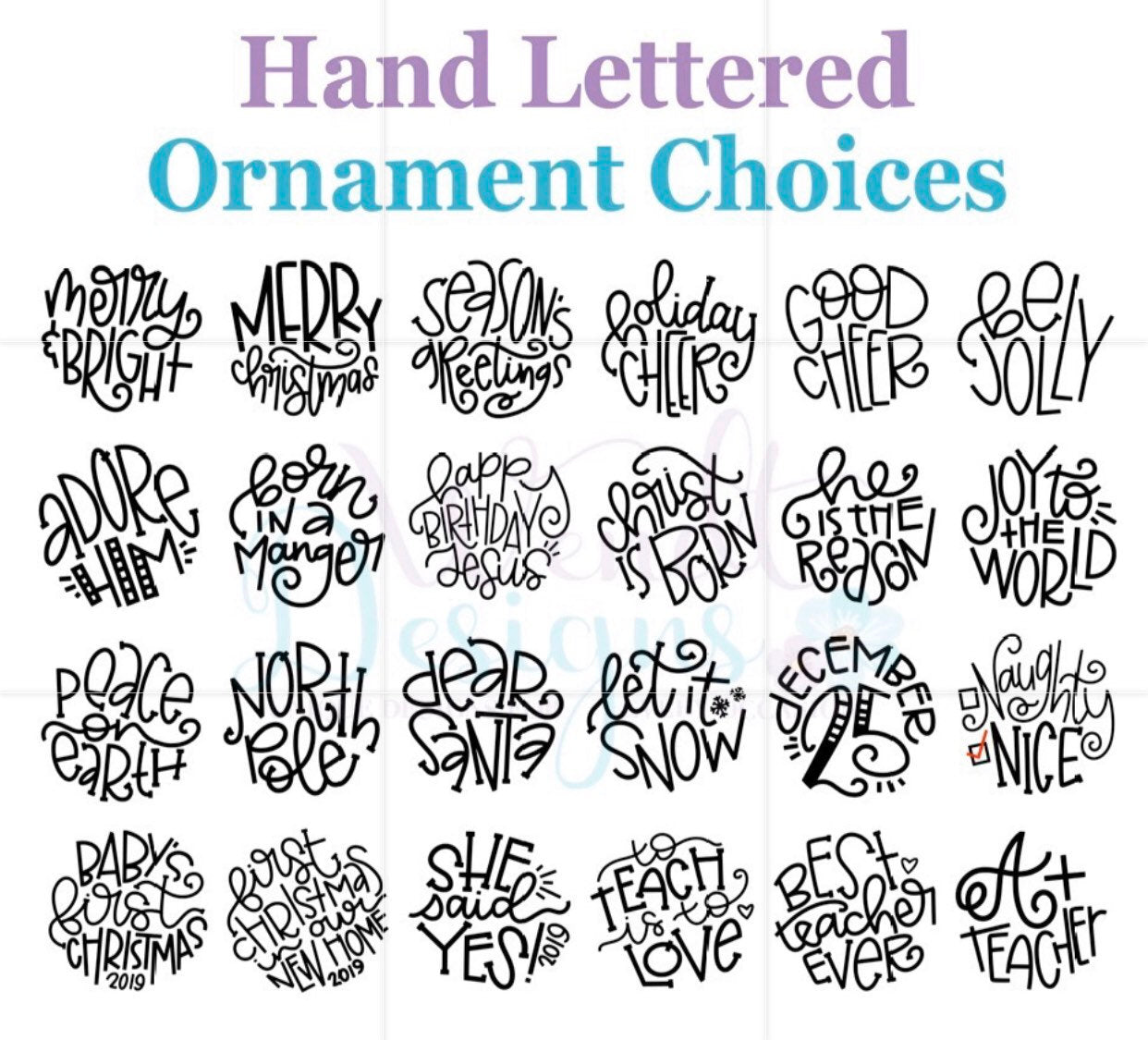 Please see the design chart for lettering options. These ornaments are made to order and require a 4-5 business day turnaround.