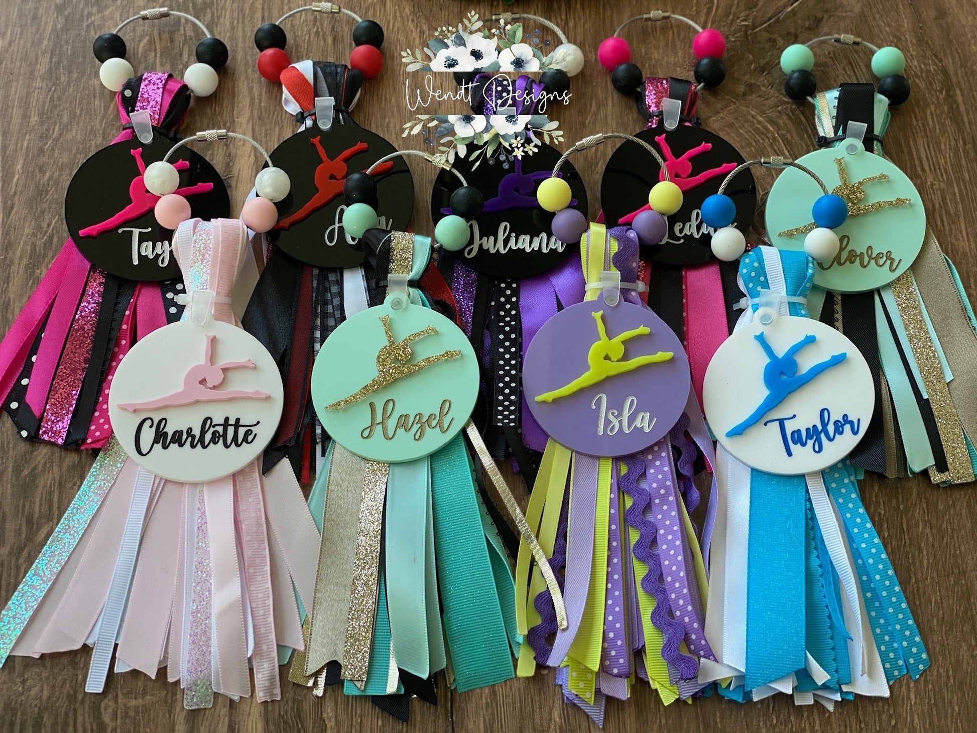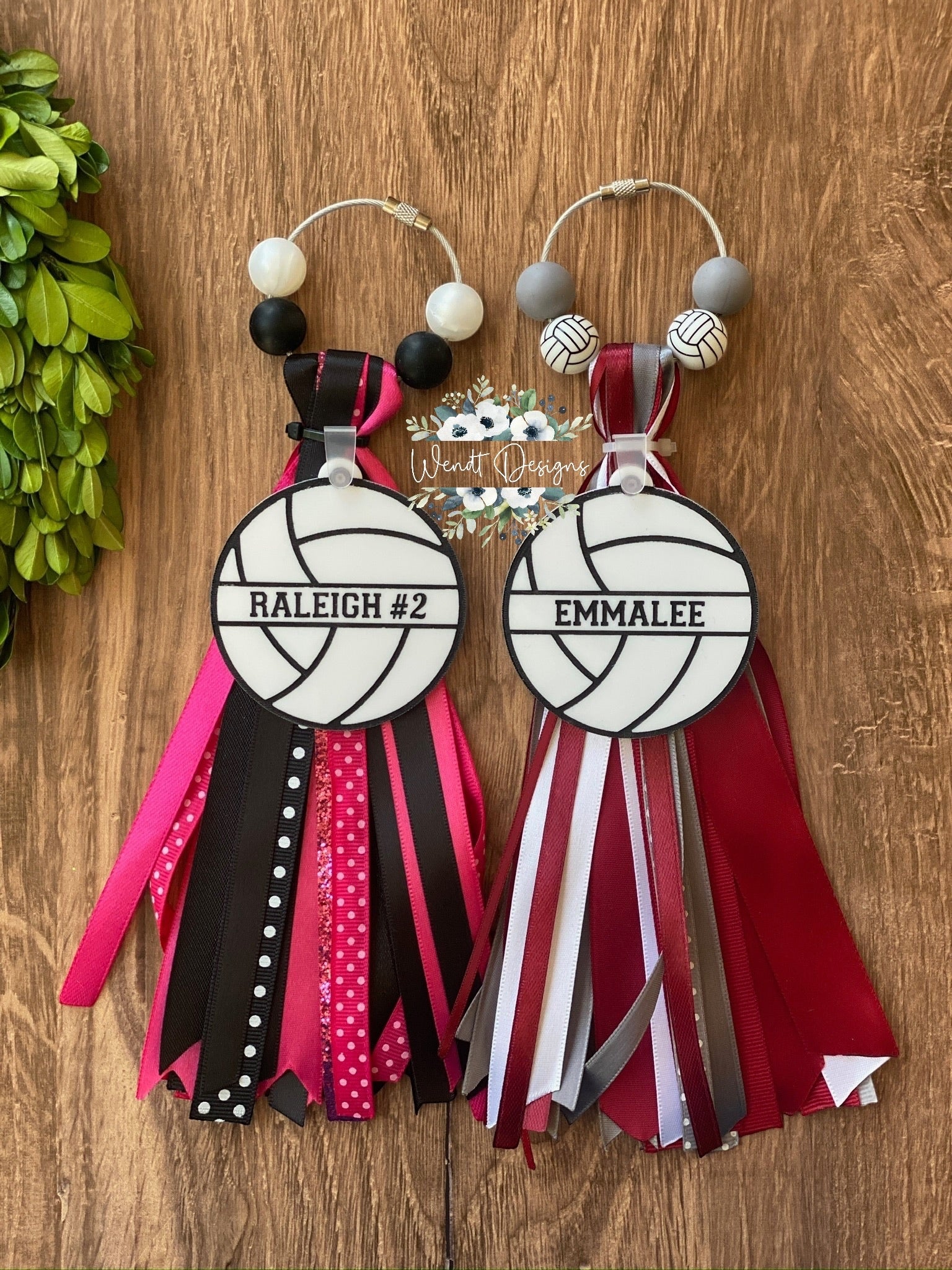 Each charm will come with a wood and/or acrylic 2.75" personalized sports plate and a variety of ribbon and beads to match!