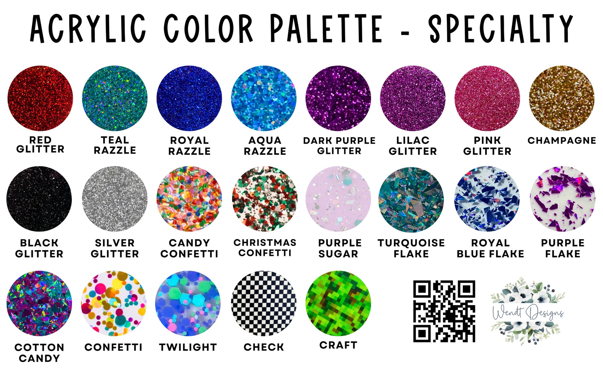 🎇 Please note: only the backer (shown in red) can be a glitter or specialty acrylic